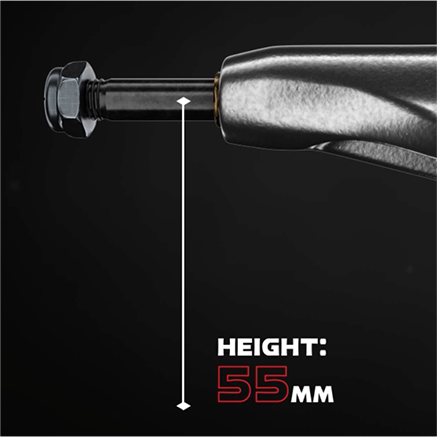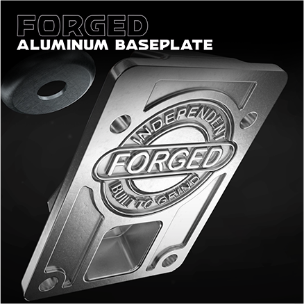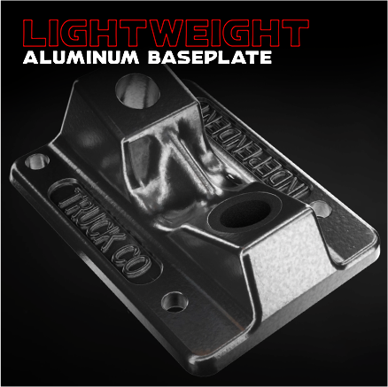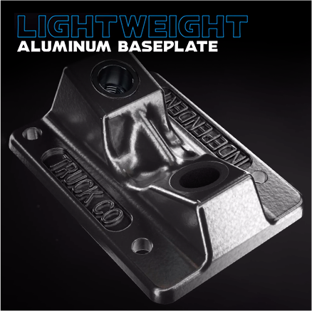 A SUPER LIGHTWEIGHT VERSION OF THE MiD WITH AN INVERTED KINGPIN, FORGED BASEPLATE, AND HOLLOW AXLE. 50.5MM HEIGHT. AVAILABLE IN SIZES 129, 139, 144, 149, 159. PATENTED DESIGN.