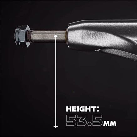 AN ULTRA-LIGHTWEIGHT VERSION OF THE STAGE 11 WITH A FORGED BASEPLATE, TITANIUM AXLE, AND HOLLOW KINGPIN. 53.5MM HEIGHT. AVAILABLE IN 129, 139, 144, 149, 159, 169